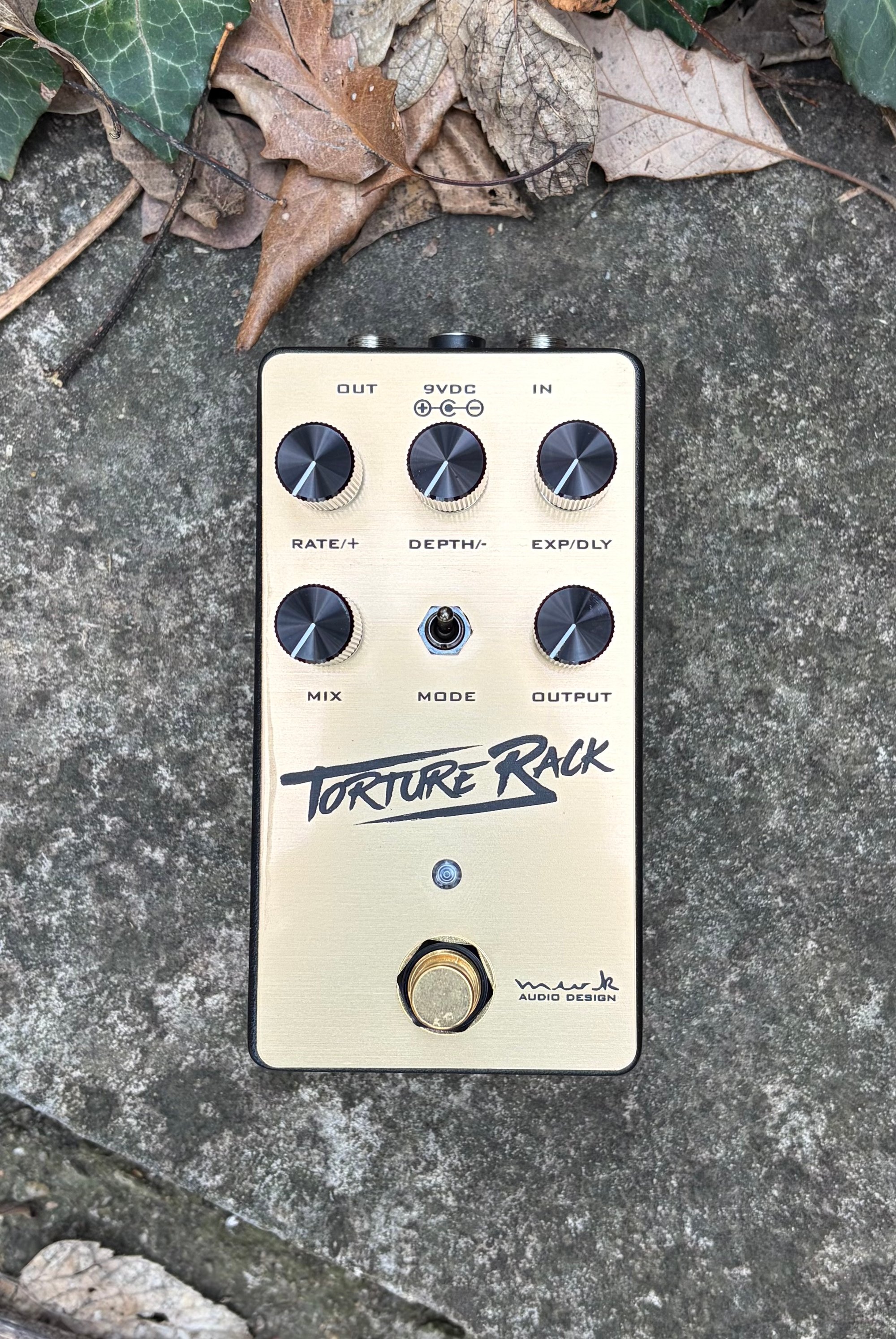 VOL controls the global output level of the pedal. This can be easily set to be slightly quieter, the same level, or louder than your bypassed signal volume. Again, this can be used to help achieve the intended feel when the Torture Rack is in use. If you are trying to set the pedal at the same volume as when disengaged, I recommend turning the MIX control all the way down, which will be only your dry signal. Then turn on the pedal and set the VOL control so it is the same as when the pedal is off. Frequently, this is around 10:30-11:30 o’clock.