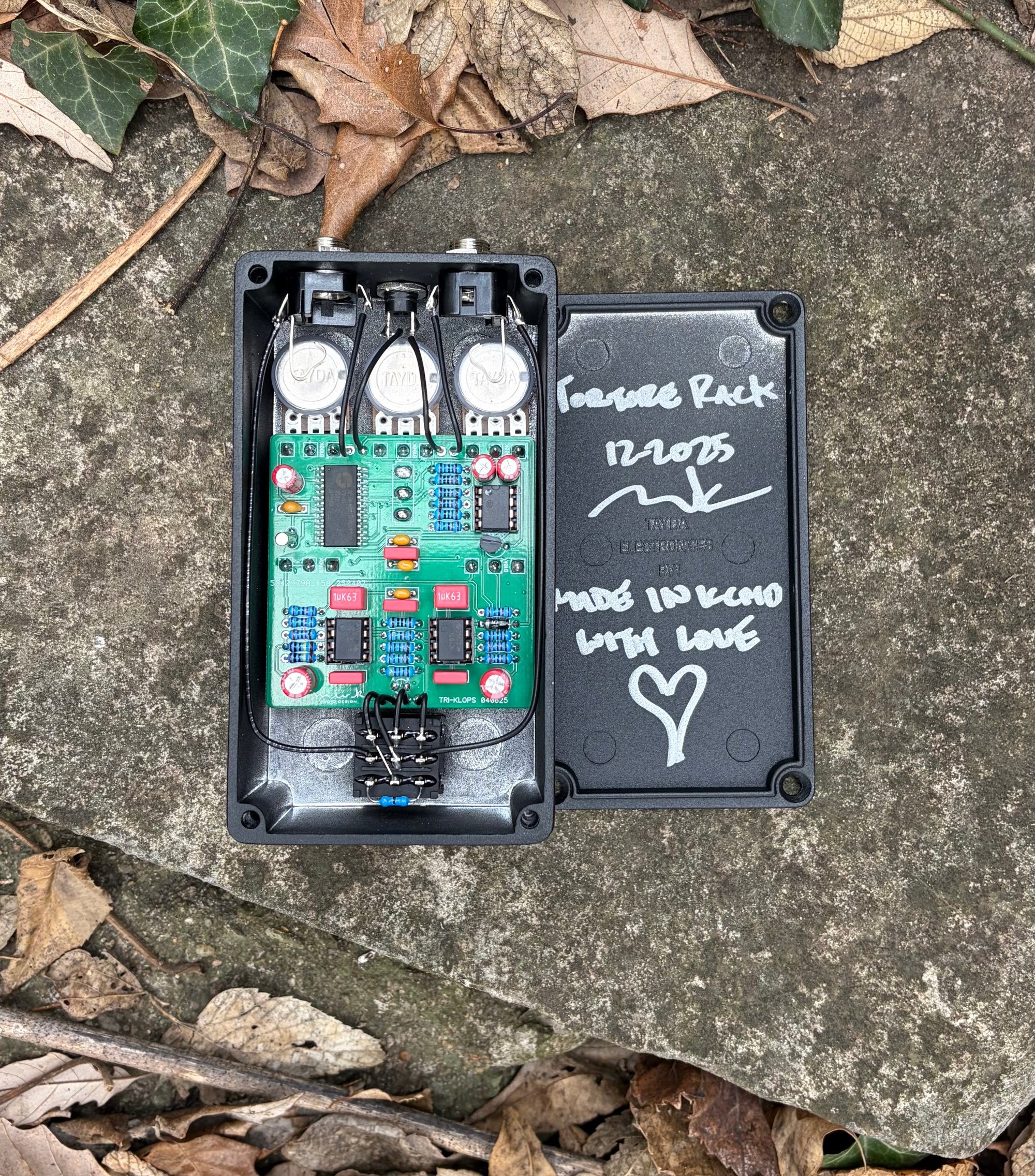Like many of my time-based effects, the Torture Rack utilizes the Spin FV-1 controlled by a 24LC32A EEPROM to create a warm, rich, and complex chorus and detune pedal. Moreover, your dry signal importantly remains 100% analog and tonally transparent. Each effect is mixed back with the dry signal using an analog mixer (more below), with noon being a 50/50 mix.